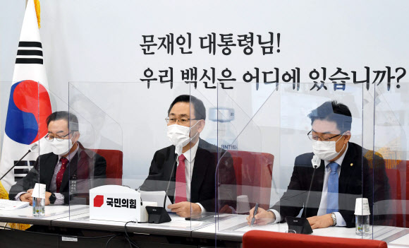 국민의힘 주호영 원내대표는 22일 원내대책회의에서 문 대통령이 백신 확보 문제로 참모와 내각을 질책했다는 언론보도에 대해 “(정부가) 백신이 확보돼 있다, 저쪽에서 계약하자고 한다고 하더니 언제 공급할지 답도 못 하고, 그런 보도가 나오니 국민들이 불안해하는 것”이라고 비판했다. 국민의힘 최형두 원내대변인도 “청와대판 아시타비(我是他非·나는 옳고 남은 틀리다)’의 전형”이라고 지적했다.