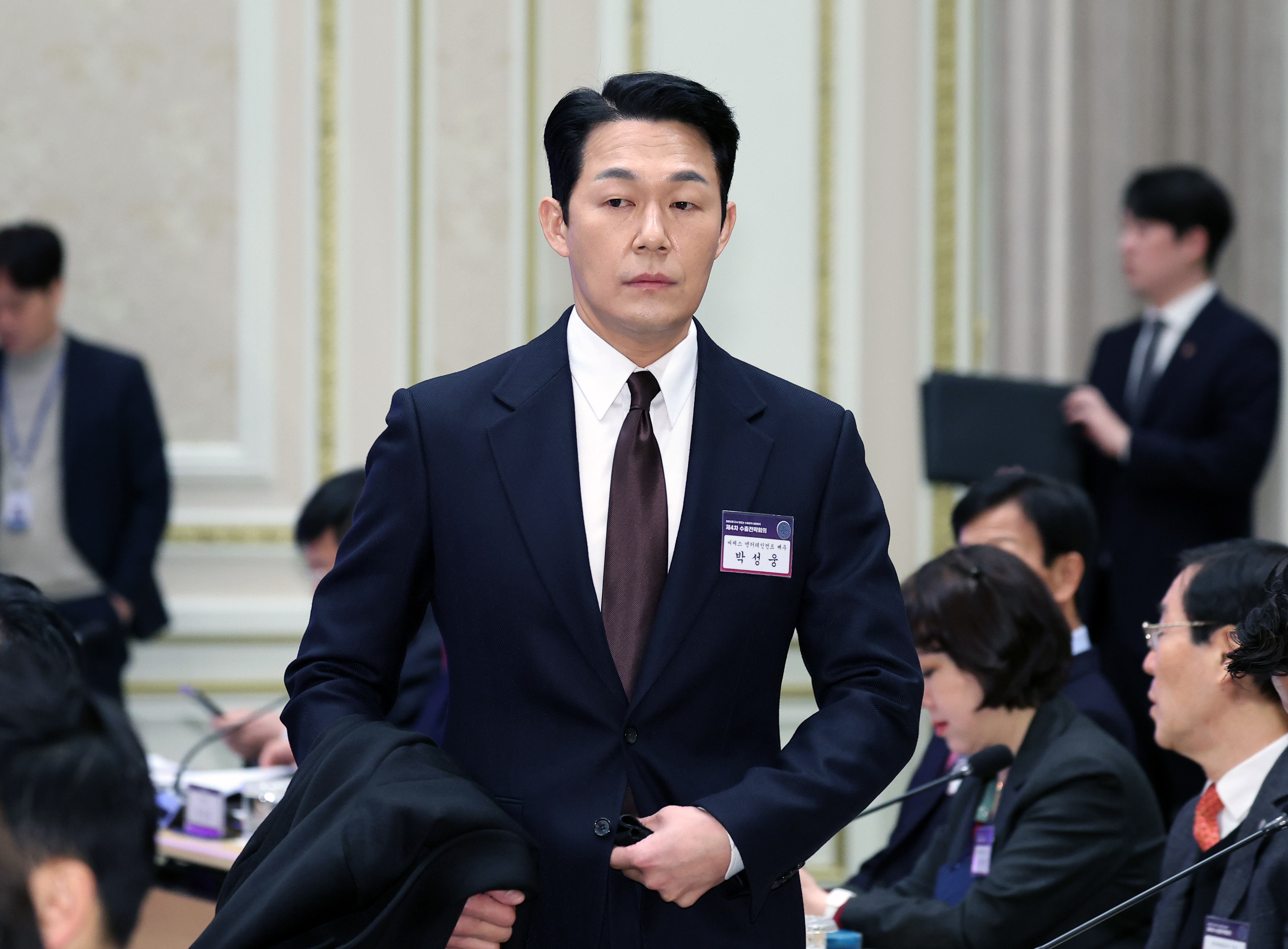 배우 박성웅이 23일 청와대 영빈관에서 열린 제4차 수출전략회의에 참석하고 있다. 연합뉴스