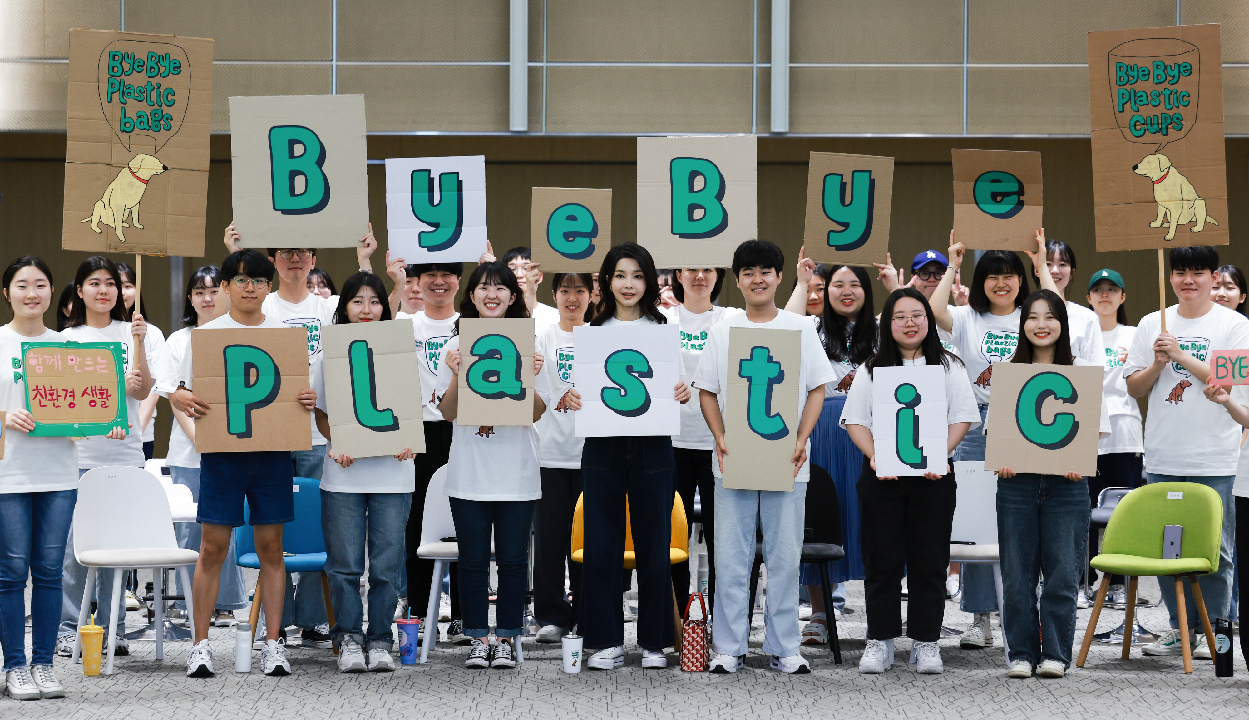 김 여사는 또 고려대 중앙광장에서 플라스틱 절감 실천 약속을 하는 학생들에게 폐현수막을 업사이클링(새활용)한 파우치와 캠페인 배지를 전달하는 홍보 활동에도 참석했다. 이 자리에서 김 여사는 “젊은 청년들의 행동이 세상을 바꾸는 큰 힘이 된다”며 “여러분의 작은 실천이 중요하다”고 강조했다.