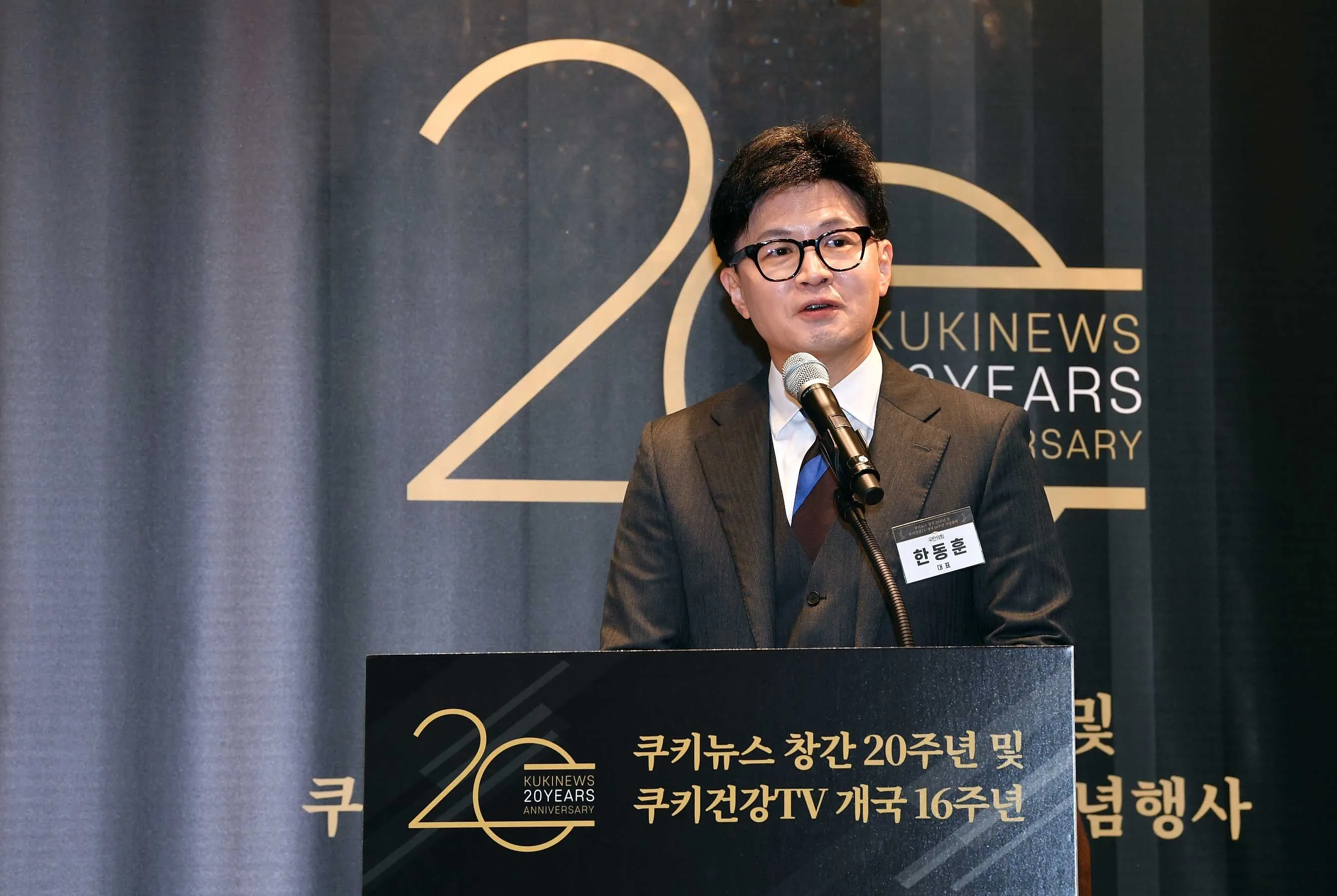 한동훈 국민의힘 대표가 20일 서울 여의도 국민일보 12층 컨벤션홀에서 열린 쿠키뉴스 창간 20주년 및 쿠키건강 TV 개국 16주년 기념행사에서 축사를 하고 있다. 국회사진기자단