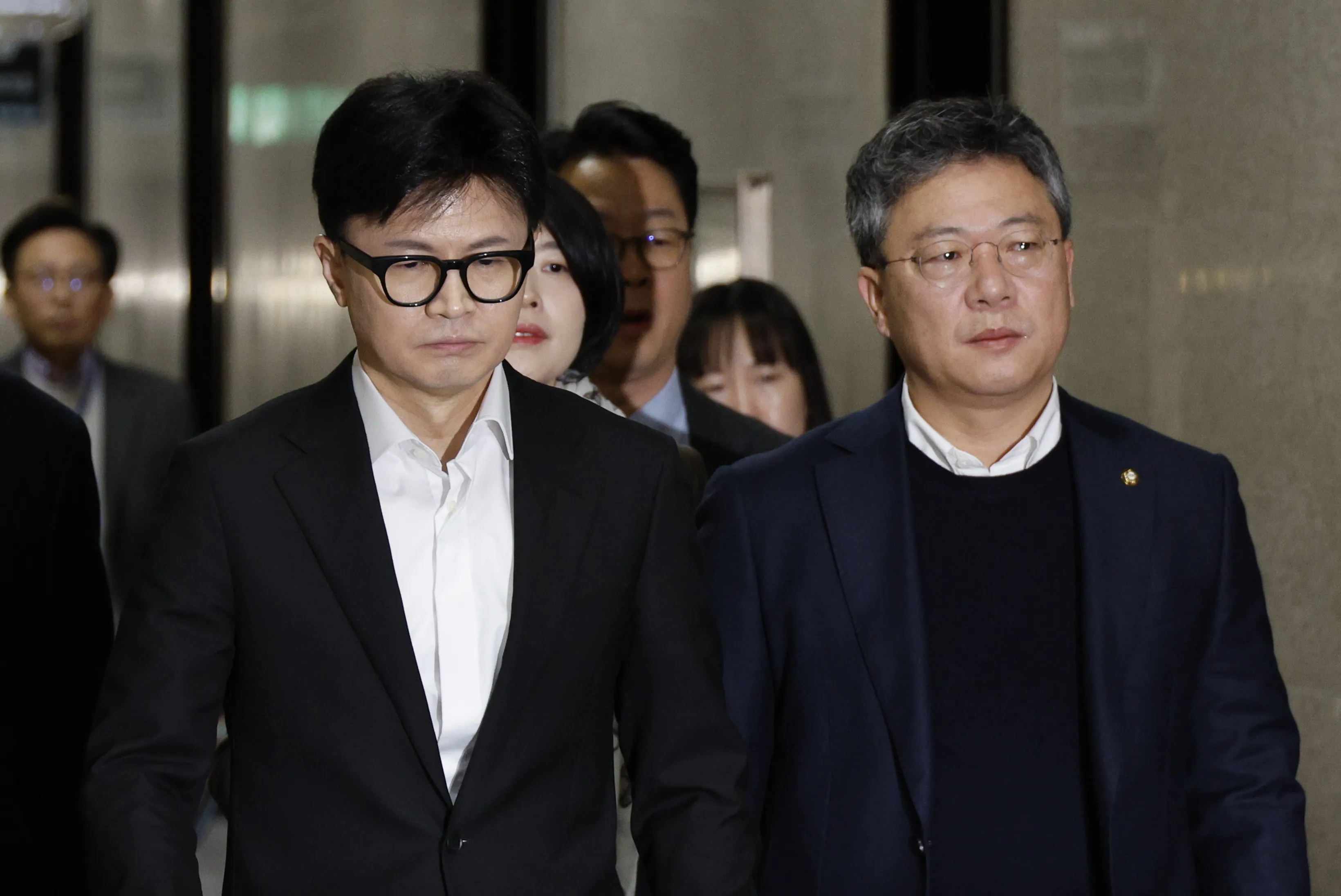 한동훈 국민의힘 대표가 6일 국회에서 열린 긴급 최고위원회의에 참석하기 위해 이동하고 있다. 뉴스1