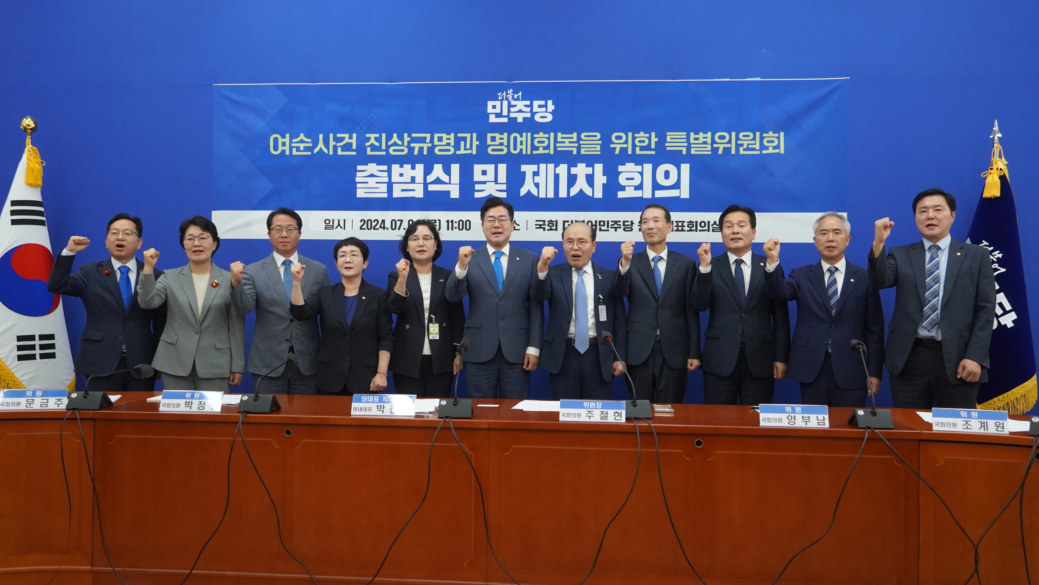 ‘민주당 여순사건특별위원회’는 위원장에 주철현 의원과 여순사건이 발생한 전남 동부권의 김문수·권향엽·문금주·조계원 의원, 여순사건법을 소관하는 국회 행안위의 박정현·양부남 의원 등 7명의 국회의원으로 구성됐다.