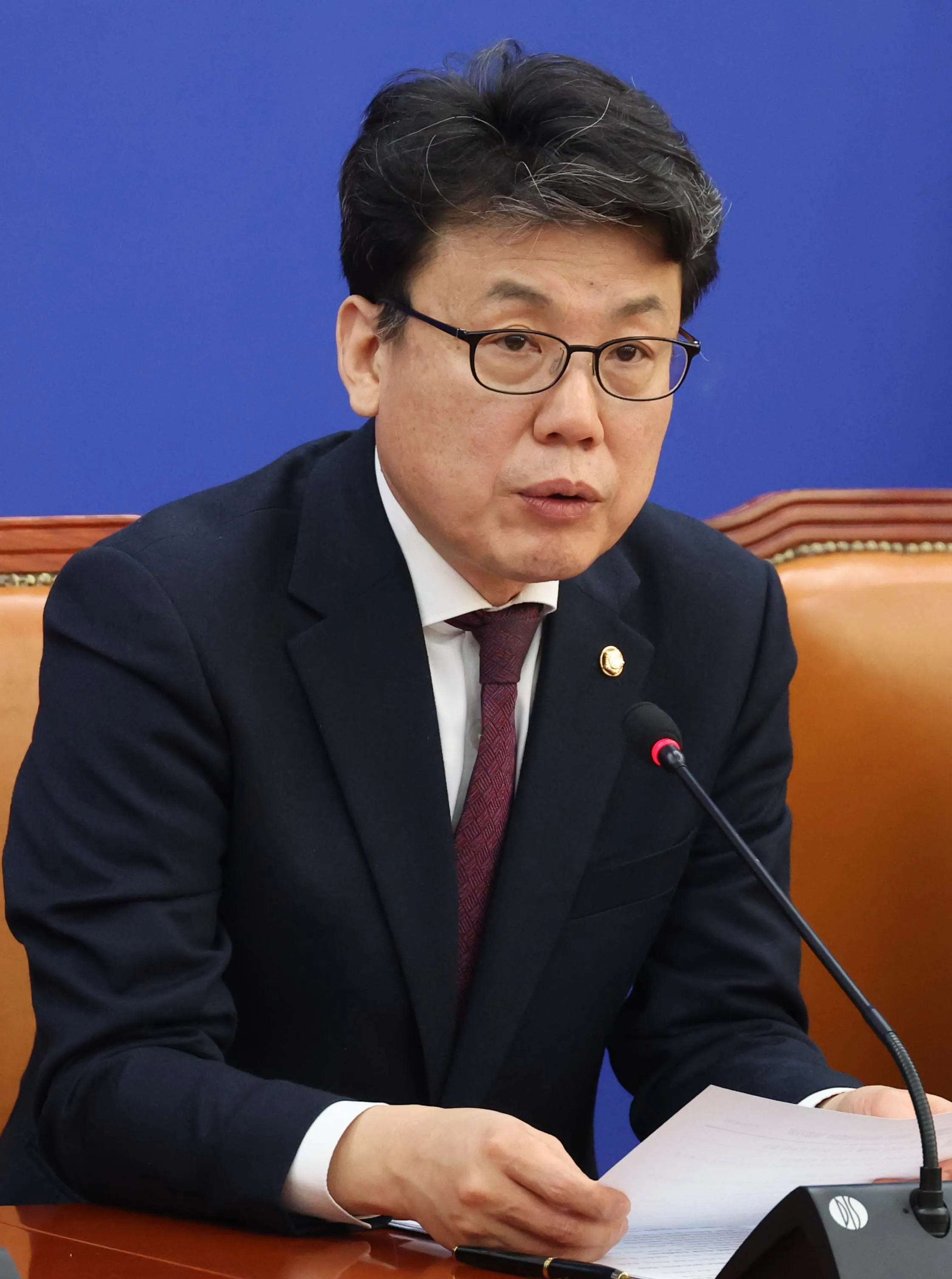 진성준 더불어민주당 정책위 의장이 18일 국회에서 열린 원내대책회의에서 발언하고 있다. 2025.02.18.