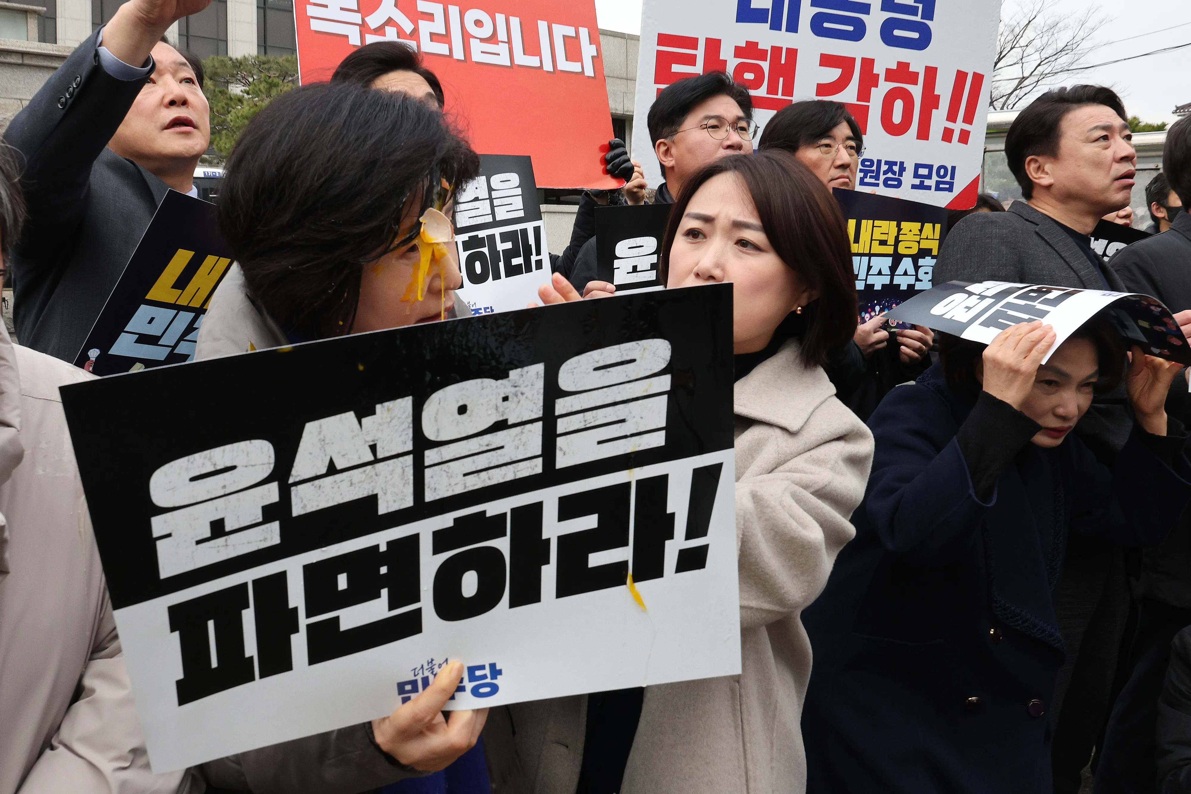 백혜련 더불어민주당 의원은 20일 오전 헌재 정문 앞에서 윤 대통령 신속 파면 촉구 기자회견을 진행하던 중 얼굴에 신원 불상자가 던진 날계란을 맞았다. 현장에서는 바나나와 물병 등도 날아다녔다고 한다. 백 의원은 페이스북에 “민주사회에서는 있을 수 없는 일”이라며 “폭력의 일상화가 헌재 앞에서 벌어지는 현실을 더이상 묵과할 수 없다. 강력한 법적 대응을 할 것”이라고 예고했다.