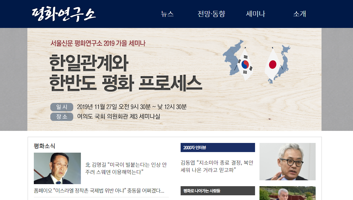 27일 세미나 ‘한일관계와 한반도평화프로세스’ 20일 ‘peacemaker’ 개통