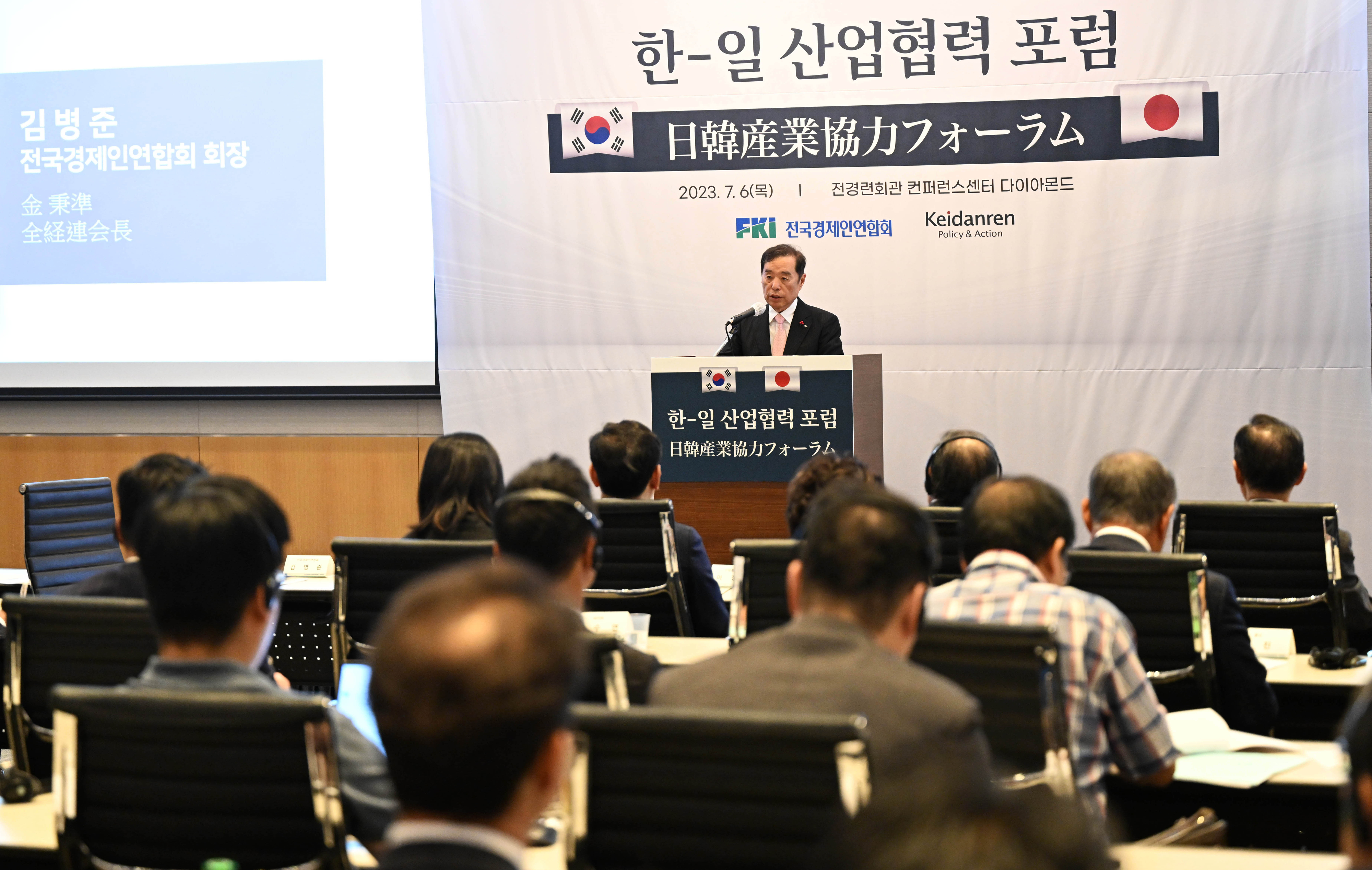김병준 전경련 회장 직무대행은 개회사에서 “산업 발전의 역사 속에서 한국과 일본은 선의의 경쟁자이자 위기를 기회로 만들 방법을 함께 모색하는 협력과 발전의 파트너였다”고 강조했다.