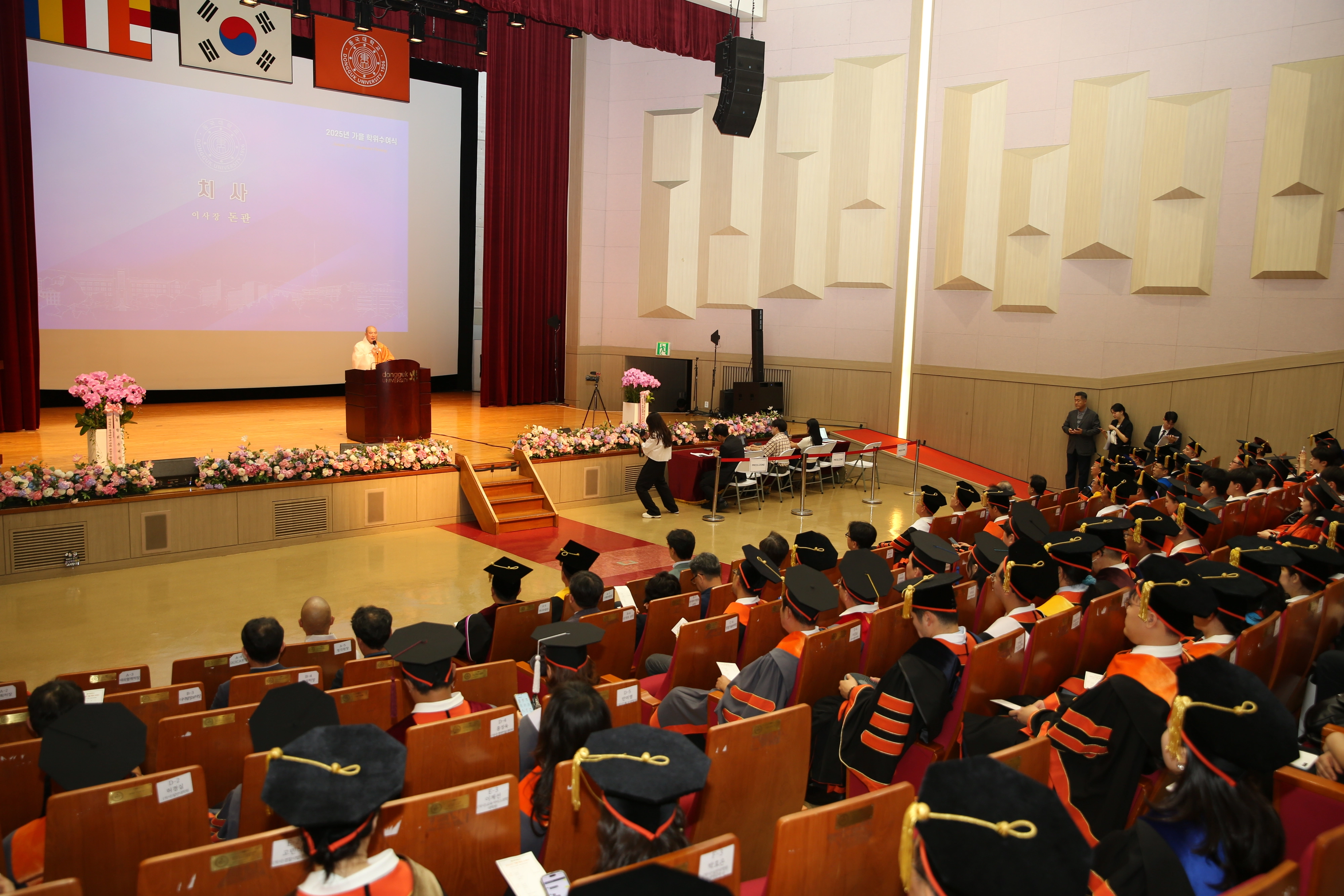 이번 학위수여식은 1부와 2부 및 부대 행사로 나눠 진행됐다. 1부 행사는 윤재웅 총장이 박사학위 수여자를 직접 격려하기 위해 마련했으며, 오전 9시 30분부터 박사학위 수여자 전원을 대상으로 진행했다. 오전 11시부터 진행된 2부 행사는 ▲개식 ▲삼귀의례 ▲국민의례 ▲학사보고 ▲총장 식사 ▲이사장 치사 ▲총동창회장 축사 ▲명예박사 학위수여 ▲공로상 수여 ▲학위 수여 ▲졸업대표자 연설 ▲동문 축사 ▲교가제창 ▲사홍서원 ▲폐식 순으로 진행됐다.