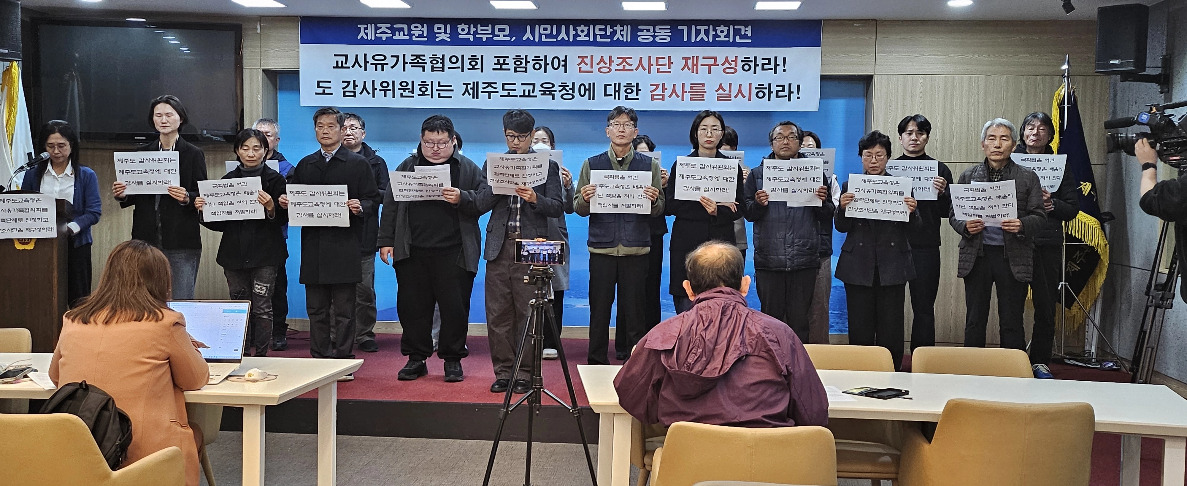 이와 관련 교육단체들은 “유가족이 지정하는 교사유가족협의회를 포함해 독립적·공정한 진상조사단을 재구성하라”며 “제주도 감사위원회는 즉각 감사를 실시해 허위·조작 의혹이 제기된 경위서 제출 경위를 규명하고 책임자를 문책하라”고 촉구했다.