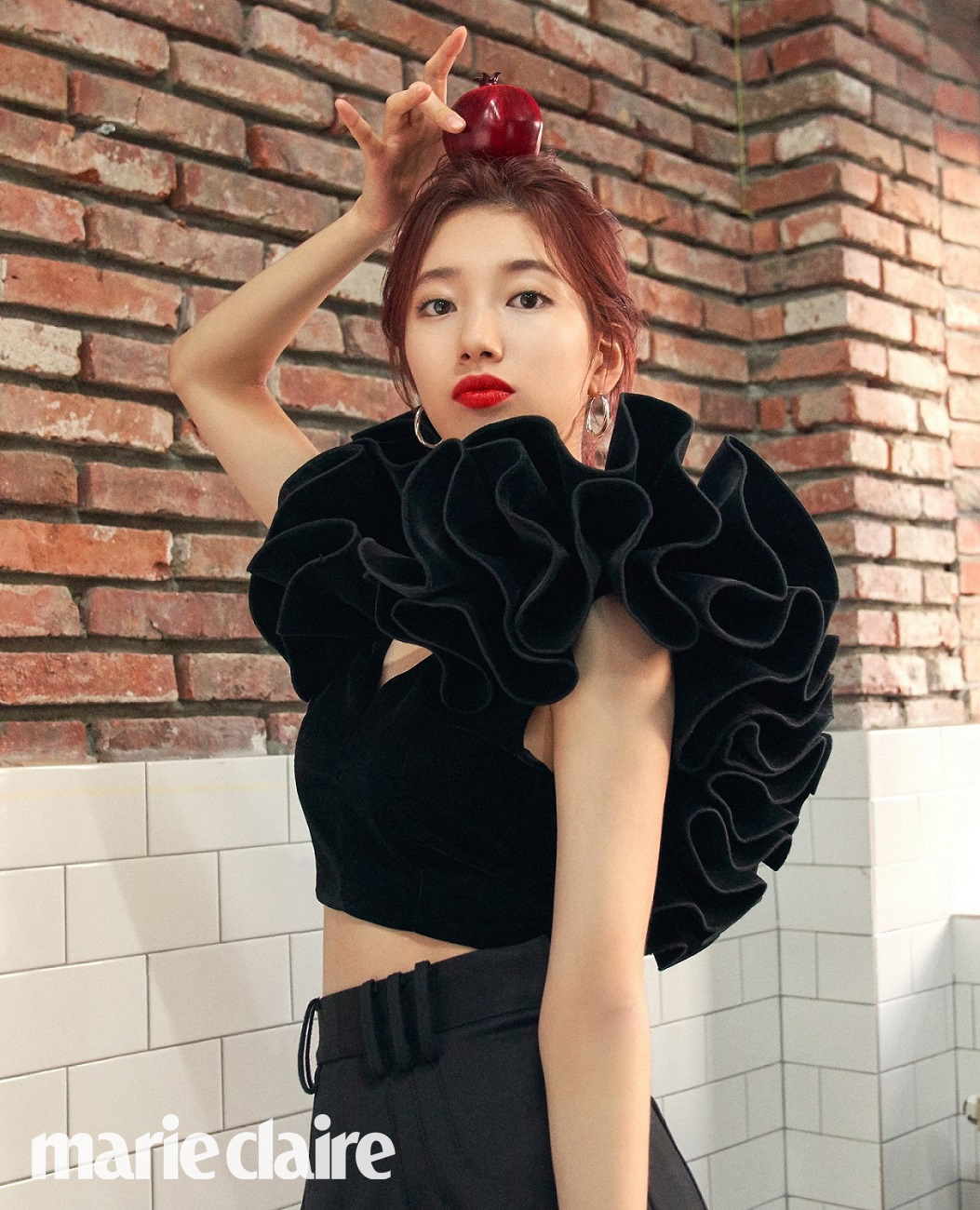 패션 매거진 <마리끌레르>와 함께한 이번 화보에서 수지는 강렬하면서 도도한 컨셉과 내추럴하면서 청순한 컨셉 두 가지 모두를 완벽하게 소화하며 무결점 미모를 뽐냈다.