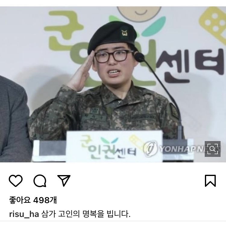 하리수는 4일 본인의 사회관계망서비스(SNS)에 고 변희수 전 하사의 사망을 다룬 기사 사진과 함께 “삼가 고인의 명복을 빈다”는 짧은 글을 올렸다.