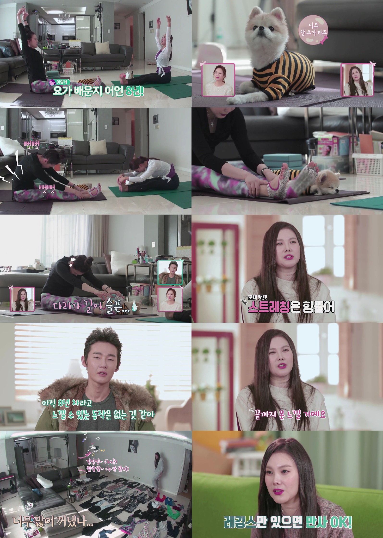 먼저 김현정은 남다른 레깅스 사랑으로 이목을 집중시켰다. 김현정은 요가 수업을 앞두고 뭘 입을지 세상 진지한 고민에 들어갔고, 그녀의 거실 한 켠을 갖가지 스타일의 레깅스로 빽빽하게 가득 채워 놀라움을 안겼다. 이 모습을 지켜보던 주위 출연진들은 “거실 바닥 가득 레깅스로 덮을 기세다” “남다른 클라스”라며 수북하게 쌓인 수많은 레깅스의 모습에 놀라움을 감추지 못했고, 김현정은 “제가 꺼낸 레깅스만 40여벌 정도”라면서 “레깅스가 제일 편하다. 요가와 필라테스, 발레 등 여러 가지 운동을 다방면으로 할 때도 레깅스만 있으면 만사 오케이 해결이 된다“고 밝히며 진정한 레깅스 성애자의 모습을 보였다.