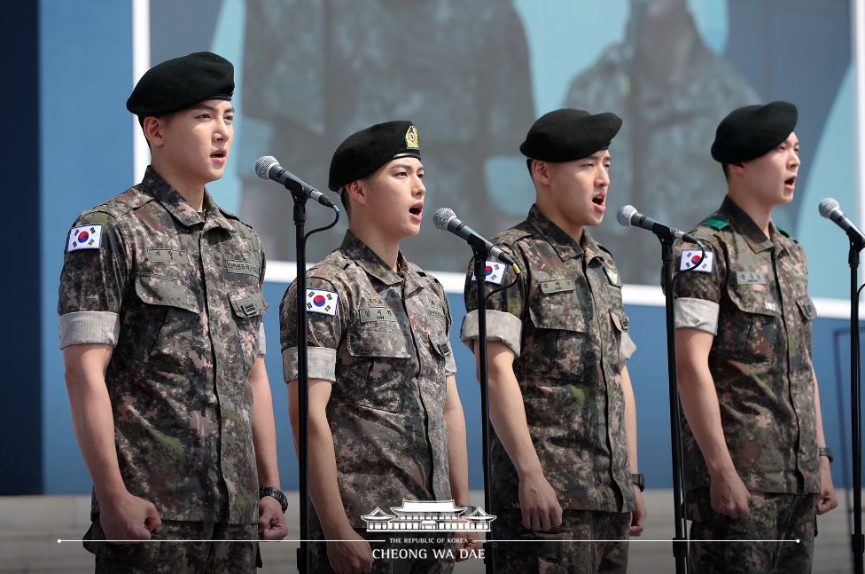 이날 군복을 입고 등장한 네 사람은 국기에 대한 경례문 낭독과 애국가를 제창, 호국영령의 넋을 위로했다.
