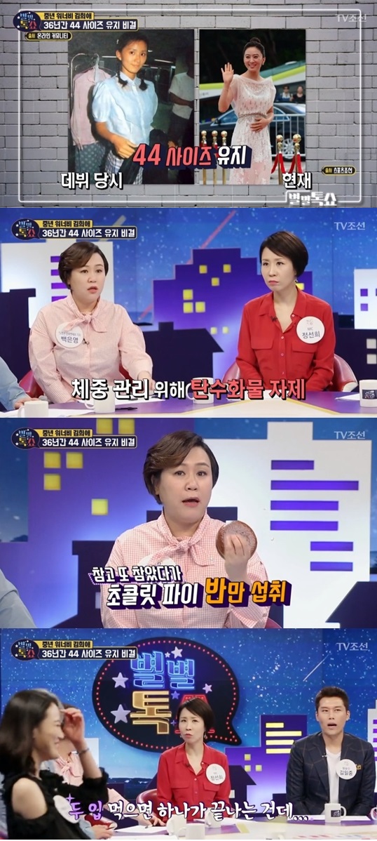 이에 MC 정선희는 “30년 넘게 44사이즈를 유지한다는 건 굉장히 힘든 일”이라면서 “제가 다이어트를 해봐서 뼈저리게 안다”고 말했다.