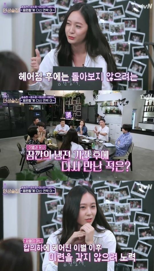 이어 “다시 만난다는 개념을 안 가지고 있다”며 “서로 합의 하에 헤어졌으면 진짜 헤어지는 거다. 미련이 없다”고 설명했다.