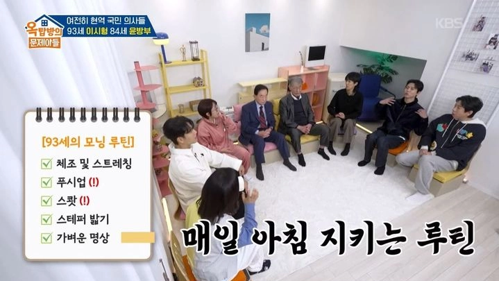 두 사람은 지난 1일 방송된 KBS 2TV 예능 프로그램 ‘옥탑방의 문제아들 시즌2’에 출연해 고령에도 활력을 유지할 수 있는 일상 속 운동 습관을 공개했다.
