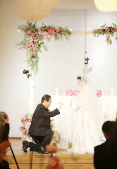 이날 신부를 향해 무릎을 꿇은 채 반지를 내밀며 “저하고 결혼해 주십시오”라고 정식으로 프러포즈하는 송해의 모습은 많은 이에게 감동을 안겼다.