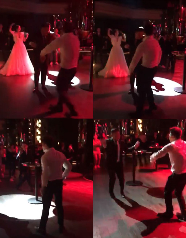 영상에는 태양이 조세호와 함께 댄스 배틀을 펼치는 모습이 담겼다. 태양, 민효린 피로연 진행을 맡은 것으로 알려진 조세호가 태양 못지 않은 춤 실력을 선보여 보는 이들을 환호하게 했다. 이들 뒤로는 순백의 드레스를 입은 민효린의 모습 또한 포착됐다.
