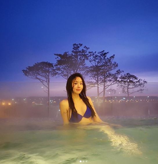 공개된 사진에는 호텔 수영장에서 비키니를 입고 스파를 즐기는 수빈의 모습과 함께 객실 안에서 케익을 들고 생일 파티를 하는 모습이 담겼다.