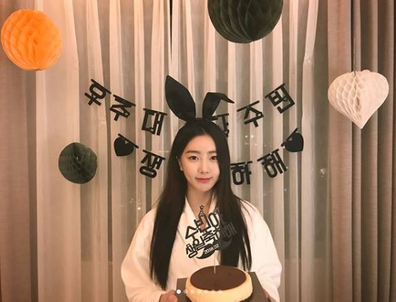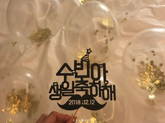특히 케익을 들고 서 있는 수빈 뒤로 ‘우주 대스타 수빈 생일 축하해’라는 문구와 금색 별장식의 투명 풍선이 눈에 띄었다.