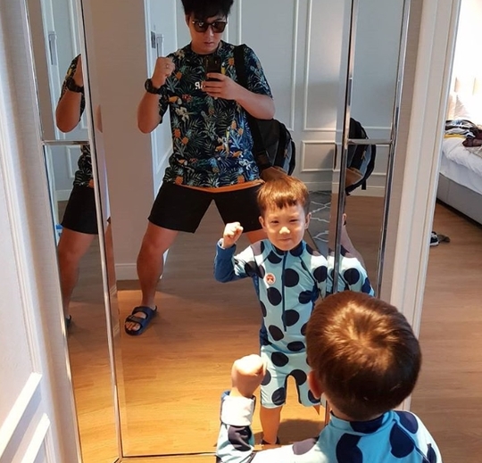 공개된 사진에는 거울을 보고 장난스러운 포즈를 취하고 있는 도경완과 그의 아들 연우 모습이 담겼다. 똑 닮은 두 사람 외모가 웃음을 자아낸다.
