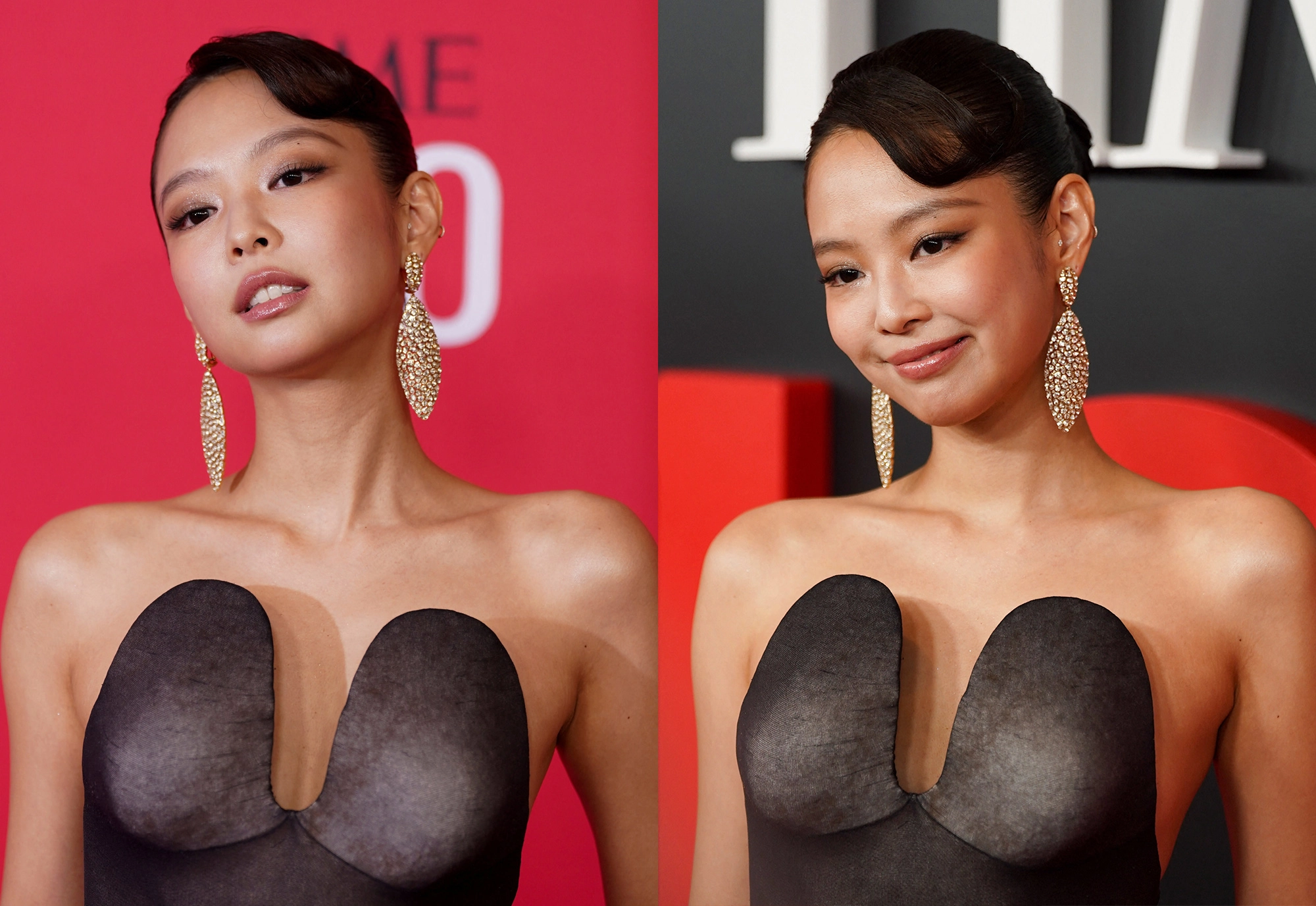 ‘K팝 아이콘’답게 이날 제니의 패션에도 이목이 집중됐다. 그는 과감한 커팅이 돋보이는 오프숄더 블랙 드레스를 입고 등장했다. 가슴 라인이 독특하게 분리되고 복부 라인을 시스루 소재로 처리한 파격적인 디자인을 선보였다. 여기에 레트로풍 헤어스타일로 클래식하고 우아한 분위기를 완성했다.