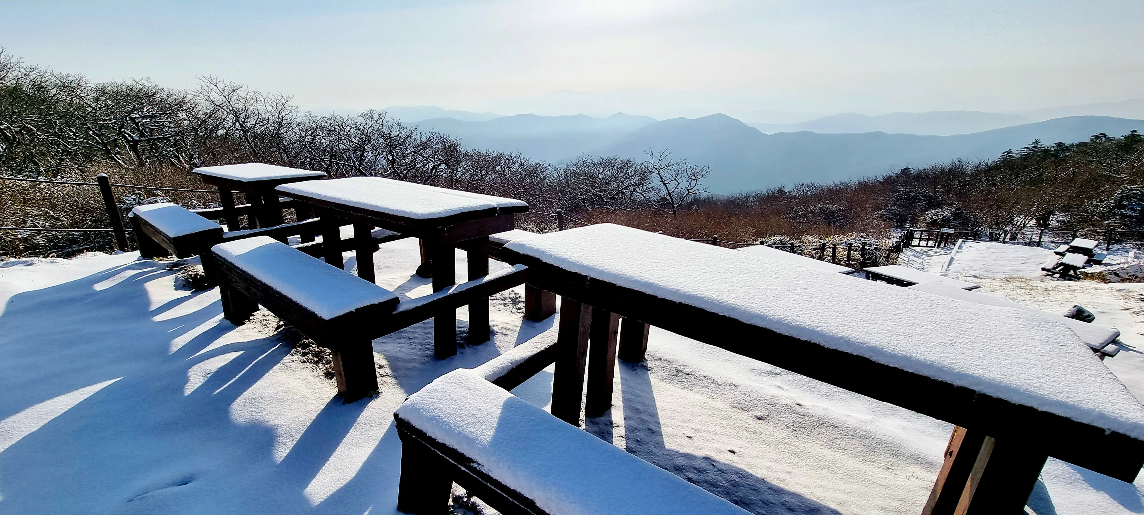 덕유산 국립공원사무소에 따르면 이날 오전 덕유산 정상 향적봉(해발 1천614m) 주변에 눈발이 날렸다.적설량은 3㎝를 기록했다.국립공원사무소는 밤사이 기온이 영하권으로 떨어지며 비가 눈으로 변했다고 전했다.