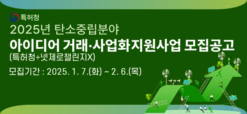 특허청은 7일 기후 기술 스타트업을 발굴·지원하는 탄소중립 프로젝트인 ‘넷제로 챌린지X’의 일환으로 탄소중립 분야 아이디어 거래·사업화 지원사업에 참여할 중소·창업기업을 모집한다고 밝혔다. 기업의 기후 기술 과제에 대한 국민 아이디어 및 특허정보를 활용해 제품개발 전략을 지원하는 개방형 제품혁신 사업으로 국민 참여 제품혁신형과 민간 수요 기반형으로 나눠 진행한다.