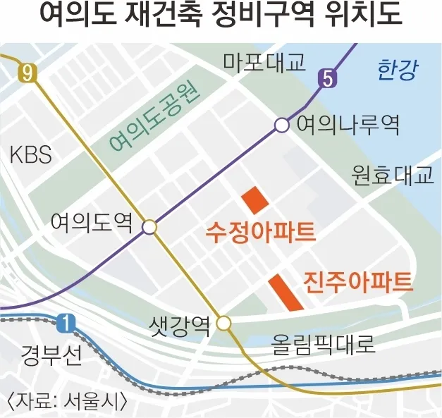 서울시는 지난 4일 제16차 도시계획위원회를 열고 이같은 내용이 담긴 여의도 수정아파트와 진주아파트의 재건축사업 정비구역 지정 및 정비계획 결정안을 각각 수정 가결했다고 5일 밝혔다.