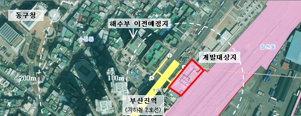 부산진역 부지는 왕복 8차선 대로에 접한 데다 부산도시철도 부산진역 8번 출구와 연접해 접근성이 우수하다. 연말 개발 대상지에서 도보로 2분 거리에 해양수산부 이전이 계획돼 있어 유동 인구 증가와 상권 활성화가 기대된다. 또 사업 부지가 부산진역~부산역 지하화 사업 구간으로, 북항 재개발 사업과 연계해 부산 도심의 성장 거점이라고 철도공단은 덧붙였다.