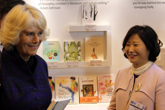 ‘2014 런던도서전’ 개막 이틀째인 9일 오후(현지시간) 영국 런던 얼스코트 전시장의 한국 도서전시관에 영국 찰스 왕세자의 부인인 카밀라 콘월 공작부인이 ‘깜짝 방문’했다.
