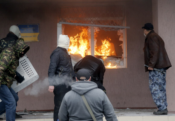 앞서 우크라이나 과도 정부는 시위대에 14일까지 자진 해산하지 않으면 대규모 진압 작전에 나설 것이라고 최후 통첩했지만, 친러시아 시위대는 이를 무시하고 정부청사를 비우지 않아 무력충돌 긴장감이 고조되고 있다. 시위대의 관청 점거 사태도 중부 고를로프카까지 확산하고 있다. 그러나 유엔 안전보장이사회에서 서방과 러시아는 의견을 모으지 못한 채 서로 비난하며 열띤 공방만 벌였다.