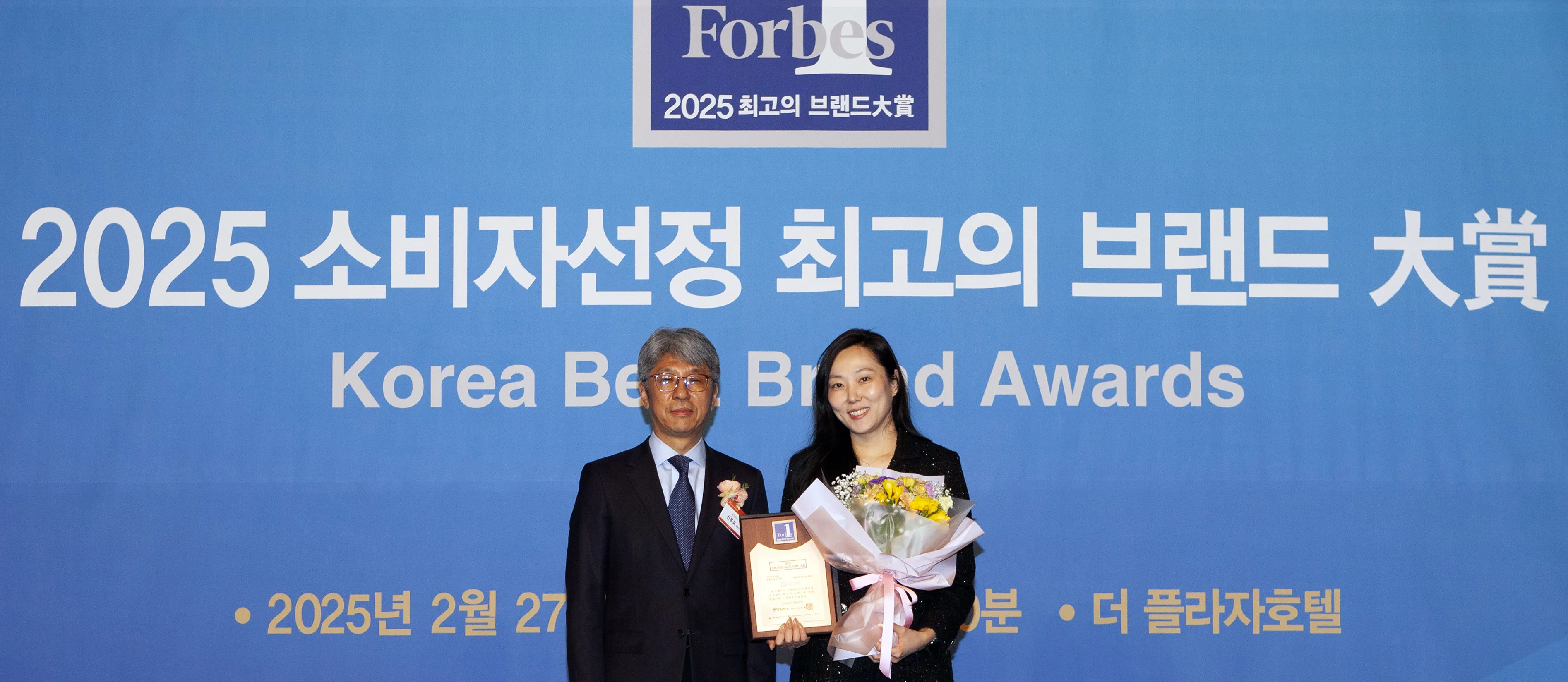 덴마크 보청기 와이덱스가 2025 소비자 선정 최고의 브랜드 대상’ 의료기기 부문에서 최고의 브랜드로 선정됐다. 사진은 27일 더 플라자호텔 그랜드 볼룸에서 열린 2025년 소비자선정 최고의 브랜드 대상 시상식에서 와이덱스 김진영 수석(오른쪽)이 의료기기부분 대상을 수상하고 있는 모습