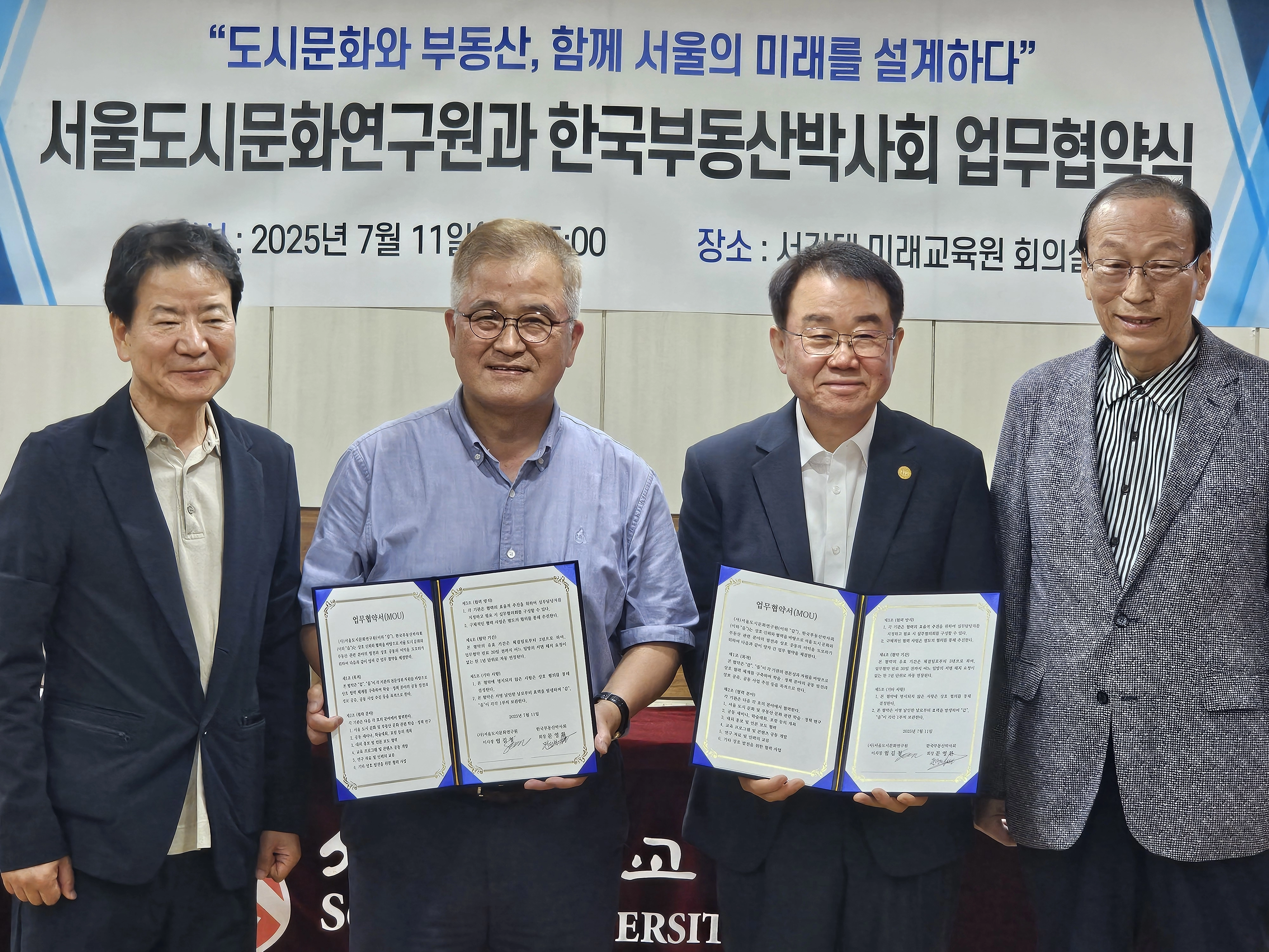 서울도시문화연구원과 한국부동산박사회는 11일 서강대 미래교육원 회의실에서 상호 발전을 위한 업무협약을 체결했다.