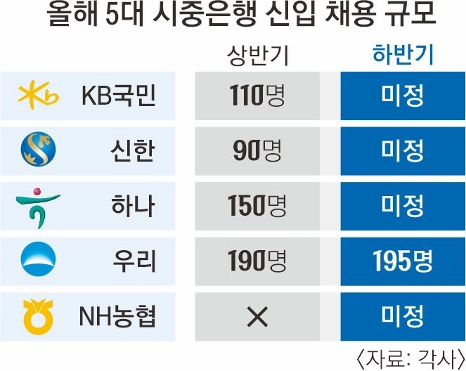 하나은행도 선발 시기를 앞당겨 이달 말에서 9월 사이 공고를 낼 예정이다. 다른 은행들도 하반기 채용 계획을 곧 발표한다.