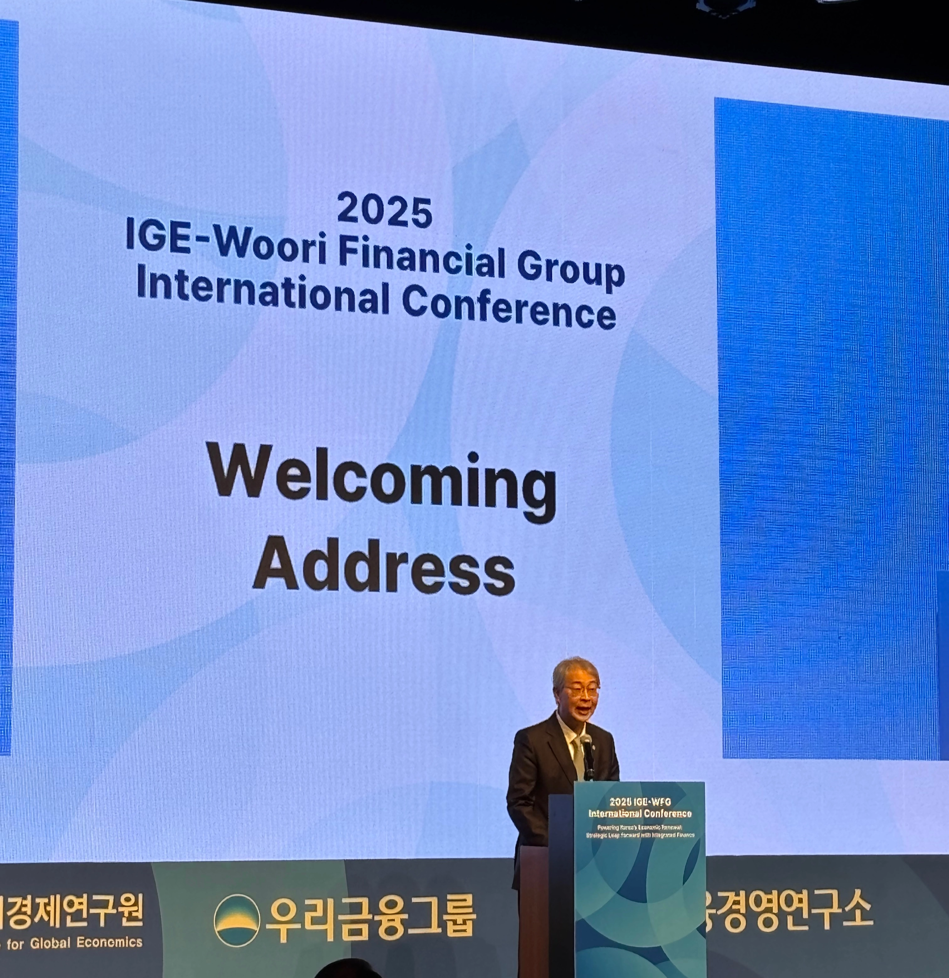 19일 금융권에 따르면 임 회장은 이날 서울 중구 신라호텔에서 세계경제연구원과 우리금융이 공동 주최한 국제 콘퍼런스 환영사에서 “대한민국은 세계를 이끄는 혁신 경제, 모두가 잘 사는 균형 성장을 목표로 새로운 출발을 시작했다”며 이같이 밝혔다. 임 회장은 고대 그리스 철학자 헤라클레이토스의 ‘변화만이 유일한 상수’라는 말을 인용하며 “우리금융은 생산적 금융과 포용 금융을 확고히 실천하겠다”고 말했다.