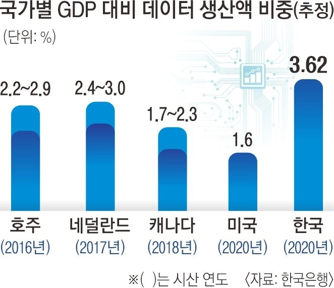 국가별 GDP 대비 데이터 생산액 비중(추정). 한국은행 제공