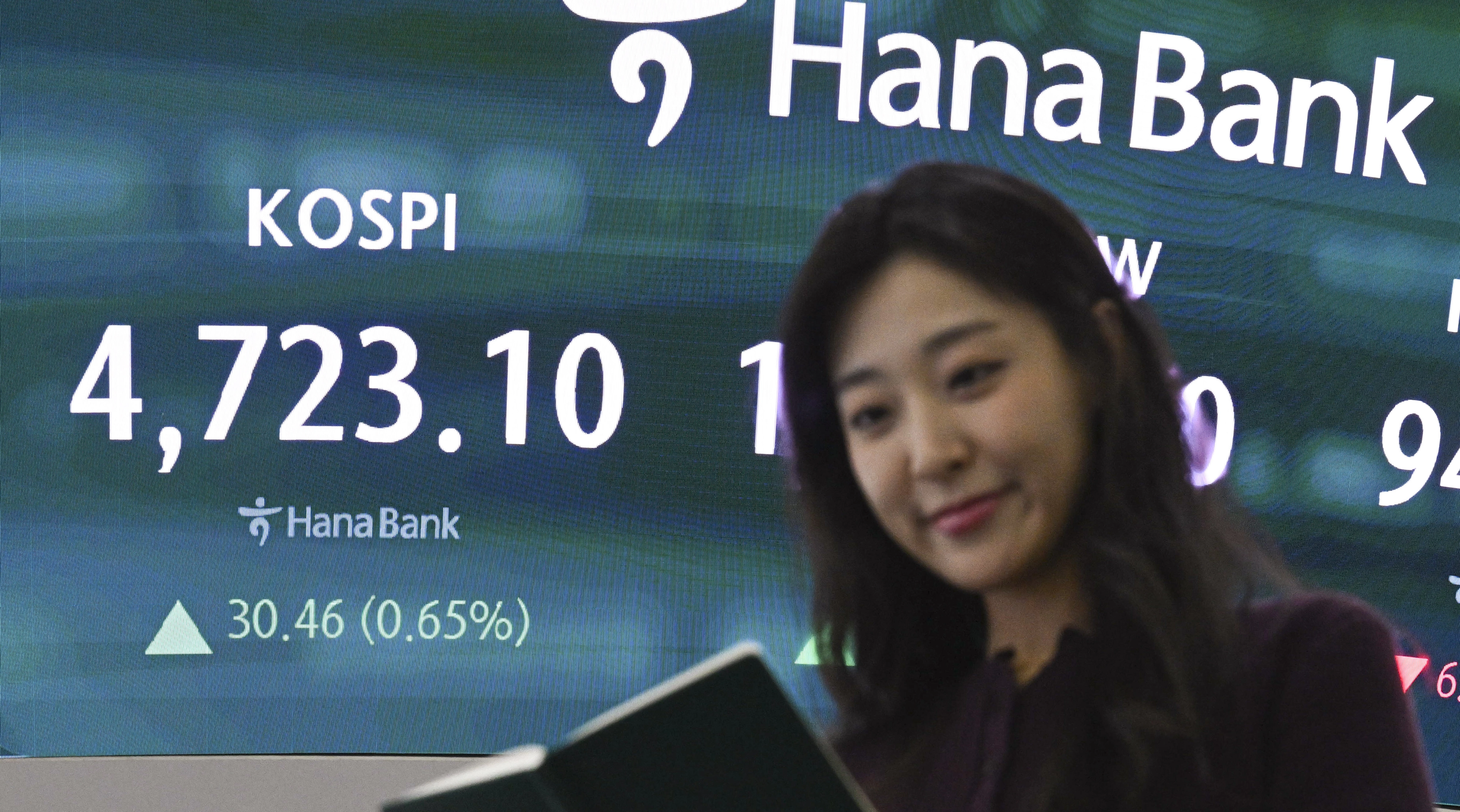 코스피가 사상 처음으로 4700선을 돌파 마감한 14일 서울 중구 하나은행 딜링룸에 코스피 지수가 표시돼 있다.