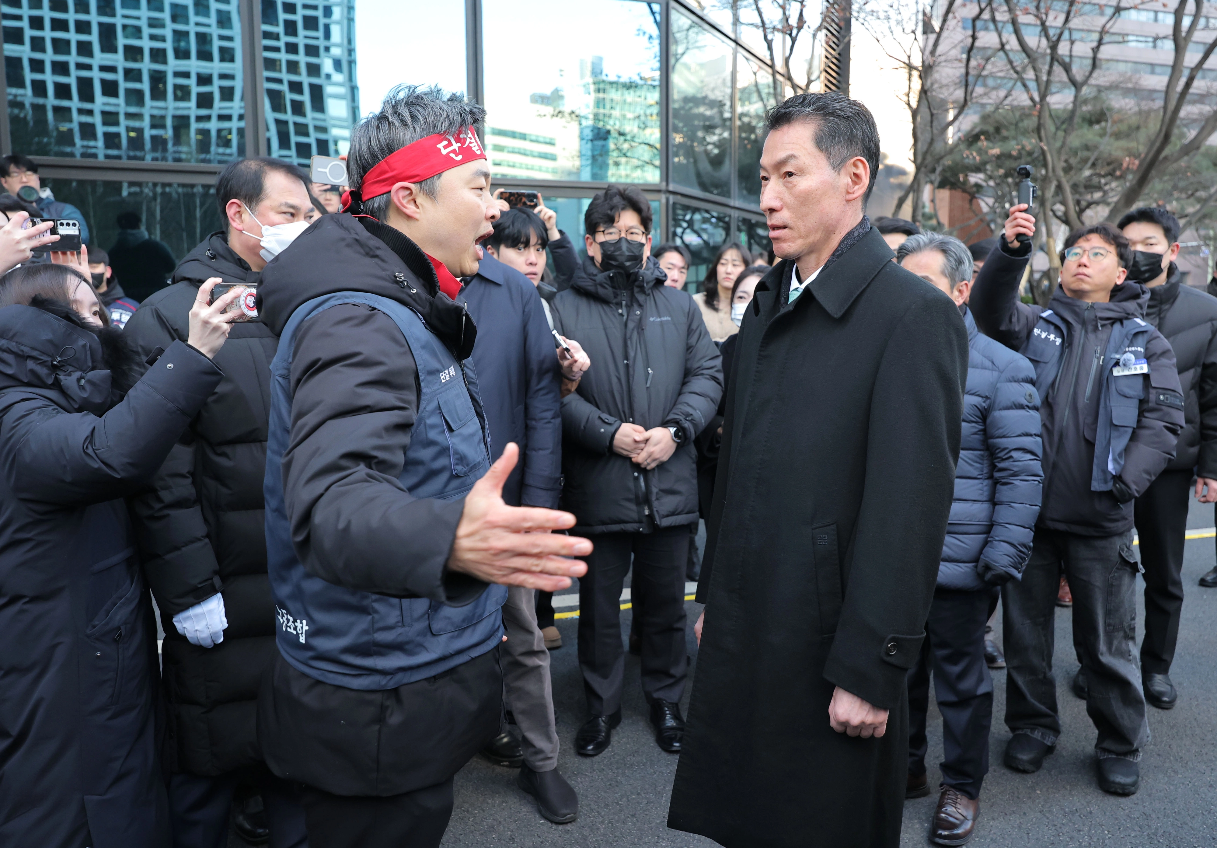 23일 금융권에 따르면 장 행장은 이날 오전 8시 50분쯤 서울 을지로 기업은행 본점에 도착했으나, 건물 출입문을 가로막은 노조원들과 10여분간 대치한 끝에 발길을 돌렸다. 노조원들은 체불임금 지급과 관련해 “대통령의 약속을 받아오라”고 요구했다.