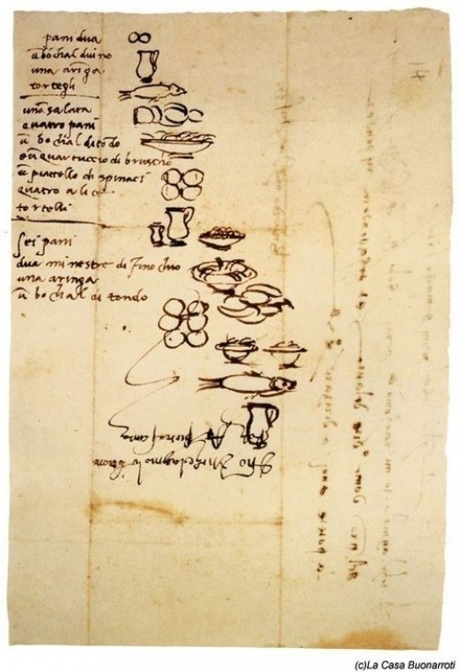 최근 해외의 온라인을 통해 ‘미켈란젤로의 장보기 목록’ 사진이 공개됐다. 이는 미켈란젤로가 글을 모르는 하인을 위해 장보기 목록을 그림으로 그린 것.