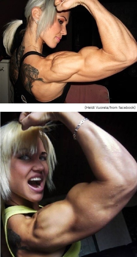 사진에는 영화 ‘헐크’의 주인공 뺨치는 팔 근육을 자랑하는 한 여성의 모습이 담겨있다. 이 여성은 스웨덴 출신의 하이디 부오렐라로 사진이 유포된 후 ‘스웨덴 여자 헐크’, ‘피트니스 디바’라 불리고 있다.