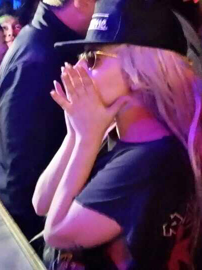 가가는 모자를 눌러쓴 채 공연장에 입장, 경호원들에 둘러싸인 채 마침 무대에 있던 박재범 등 한국 가수들의 공연을 관람했다.