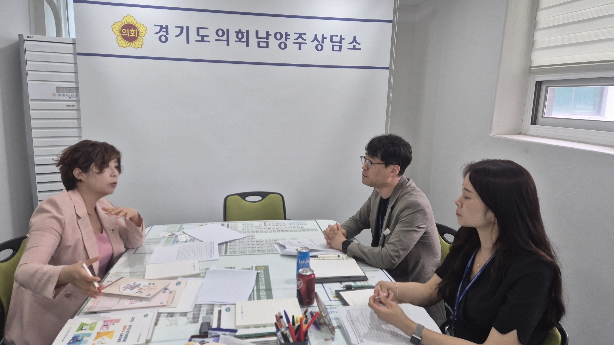 경기도의회 정경자 의원(국민의힘)은 18일(금), 경기도의회 남양주상담소에서 경기도사회서비스원에서 운영 중인 경기도 장기요양요원지원센터 이승훈 센터장과 임희진 과장과 간담회를 갖고 장기요양요원지원센터의 확대와 역할 강화, 요양보호사 등 장기요양 종사자 처우 개선 방안에 대해 심도 깊은 논의를 진행했다.