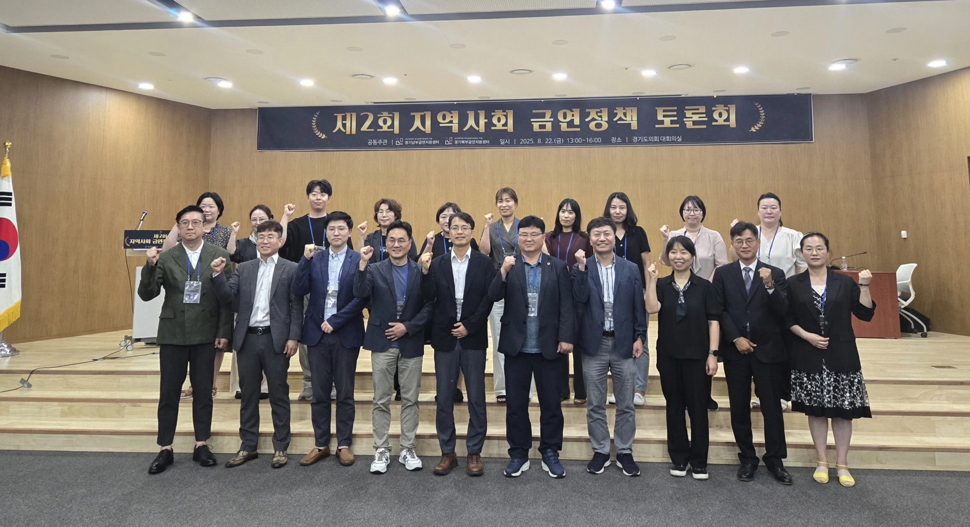 8월 22일 경기도의회 대회의실에서 개최된 ‘제2회 지역사회 금연정책 토론회’에서 토론자로 참석한 성기황 의원(교육기획위원회)이 행사 참석자들과 함께 기념촬영을 하고 있다. (사진=경기도의회)