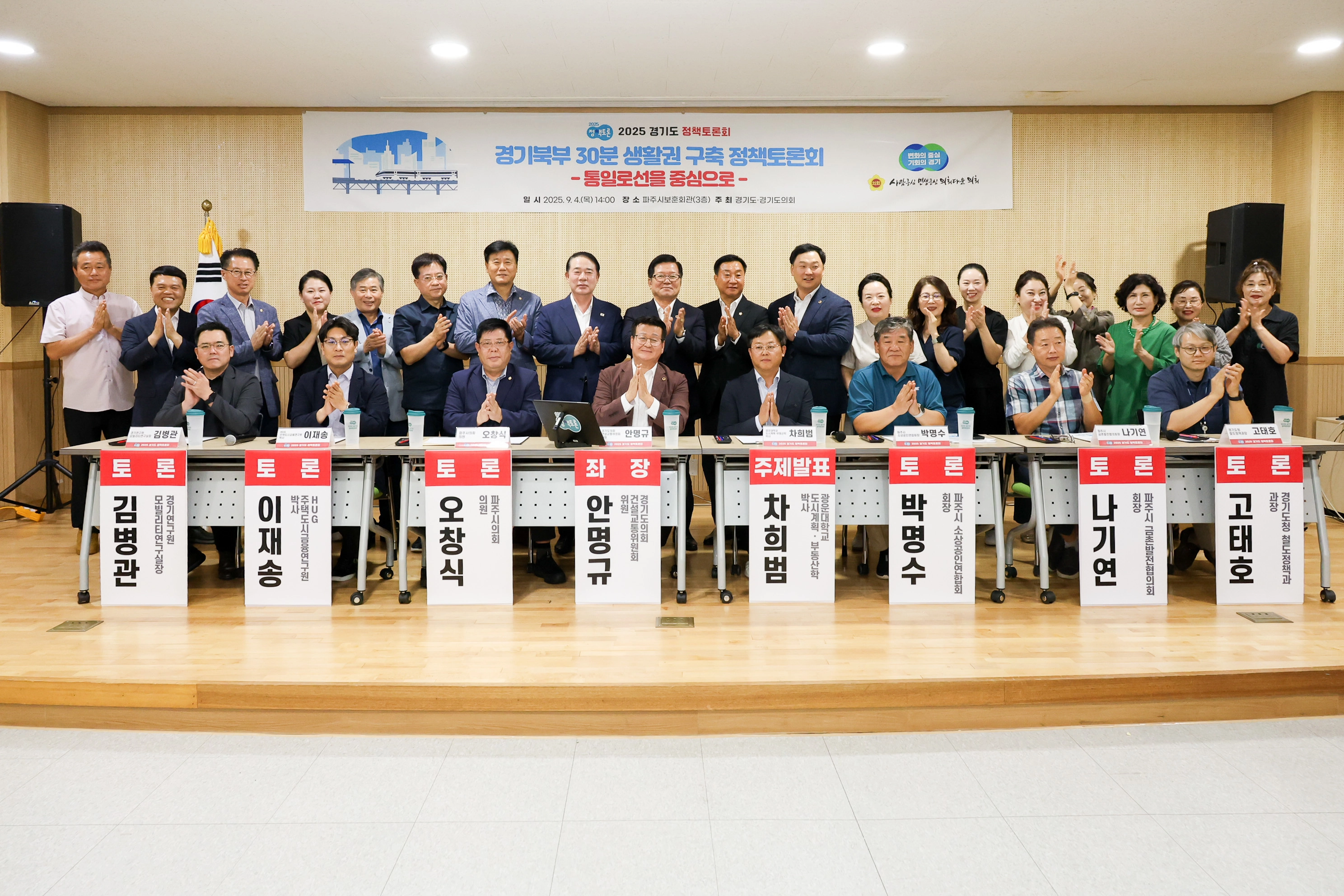 경기도의회 건설교통위원회 안명규 의원(국민의힘, 파주5)이 9월 4일(목) 파주시 보훈회관에서 열린 「경기북부 30분 생활권 구축-통일로선을 중심으로」 정책토론회를 주관하고 좌장으로 참여했다.