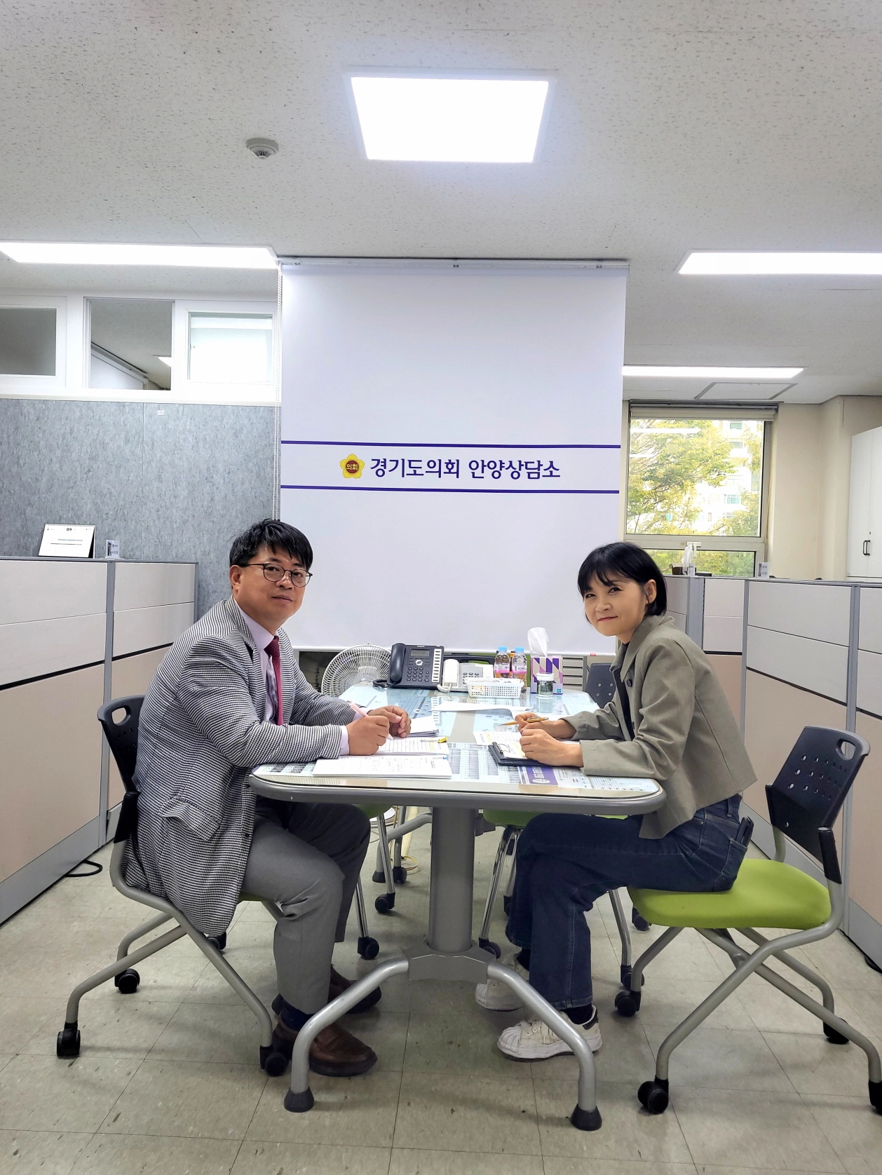 김재훈 의원이 도의회 안양상담소에서 안양시 예산법무과 관계자와 안양시청 강당 영상표출 개선 등 지역 핵심사업 논의 후 기념촬영을 하고 있다. (사진=경기도의회)