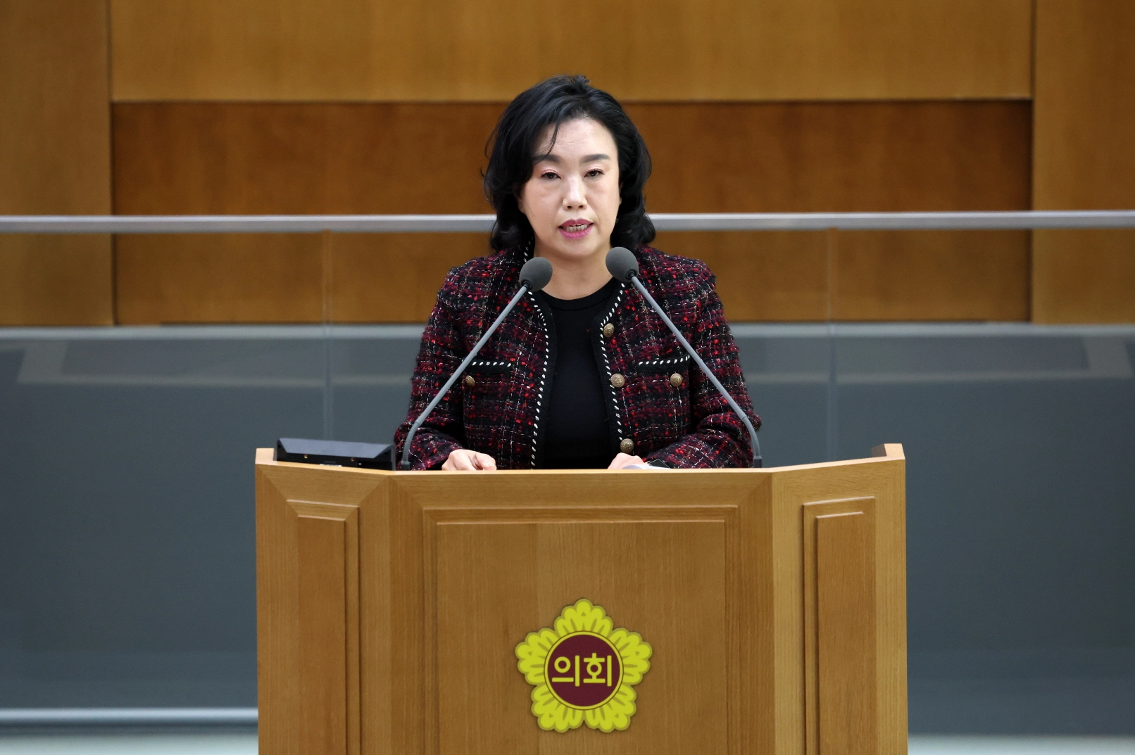 예산 운용에 대한 비판도 이어졌다. 곽미숙 의원은 고물가·고금리·고환율로 민생이 위기에 놓인 상황에서, 수억 원을 들인 전시성 리모델링과 실효성 없는 시설물 설치 등 “도민의 삶과 동떨어진 예산 집행이 반복되고 있다”고 지적했다. 그러면서 집행부에 대한 견제와 감시라는 의회의 본래 역할이 제대로 작동했는지 자문해야 한다고 강조했다.
