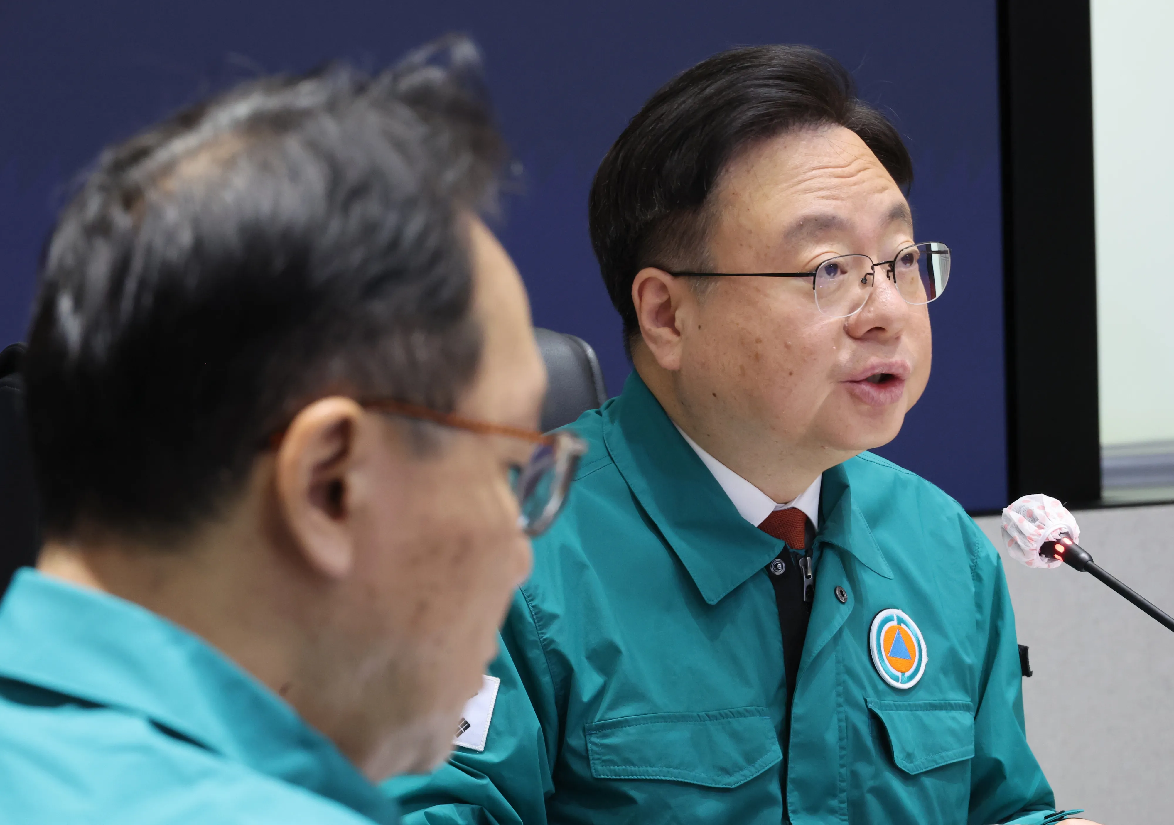 조규홍 보건복지부 장관이 6일 서울 종로구 정부서울청사 상황실에서 열린 의사 집단행동 중앙재난안전대책본부 회의에서 발언하고 있다. 연합뉴스