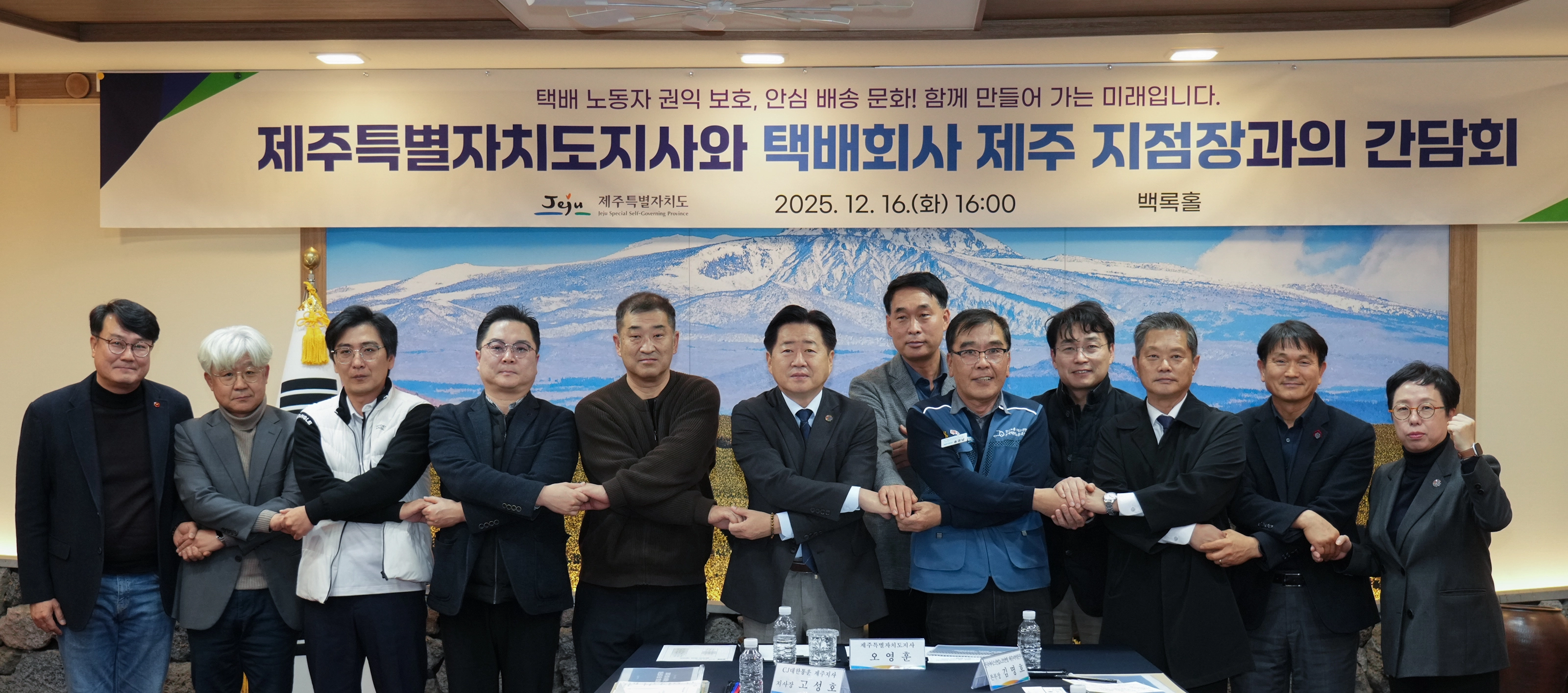 앞서 도는 16일 오후 도청 백록홀에서 롯데글로벌로지스, CJ대한통운, 한진택배, 로젠택배, 쿠팡CLS, 제주우편집중국 등 6개 택배회사 지점장들과 간담회를 열어 노동 여건과 안전관리 실태를 점검했다. 간담회에는 전국택배노조 제주지부와 고용노동청 관계자도 참석해 현장 의견을 공유했다.