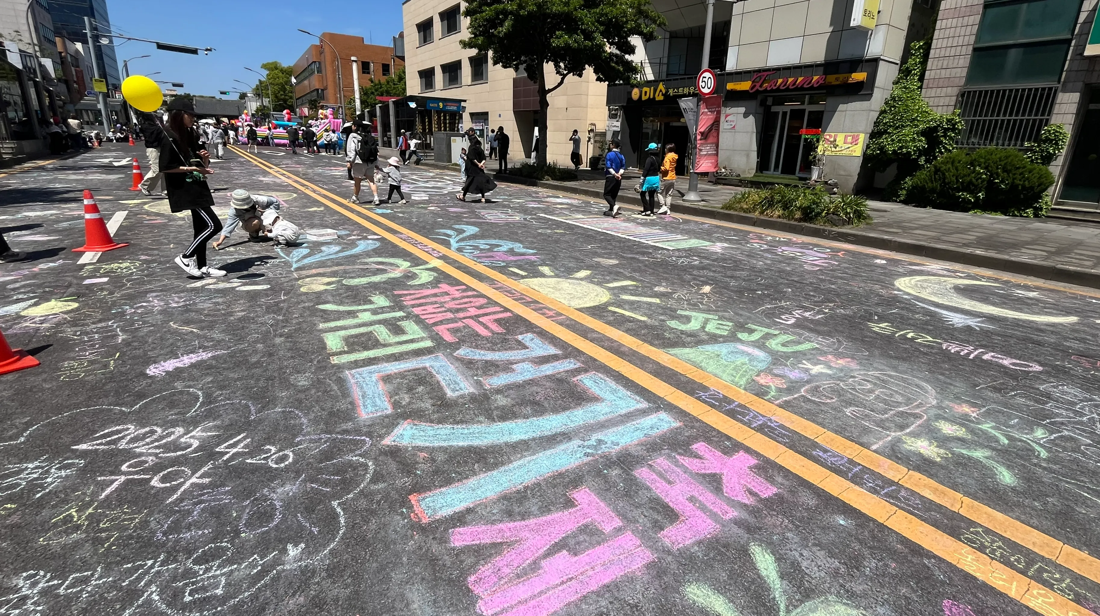 축제의 하이라이트는 관덕정 일대에서 열린 전통놀이와 거리 퍼레이드. 관덕정 마당에서는 전통놀이를 비롯한 다양한 체험활동이 진행됐으며, 아이들은 차 없는 도로 위에서 자유롭게 그림을 그리는 색다른 경험을 했다.