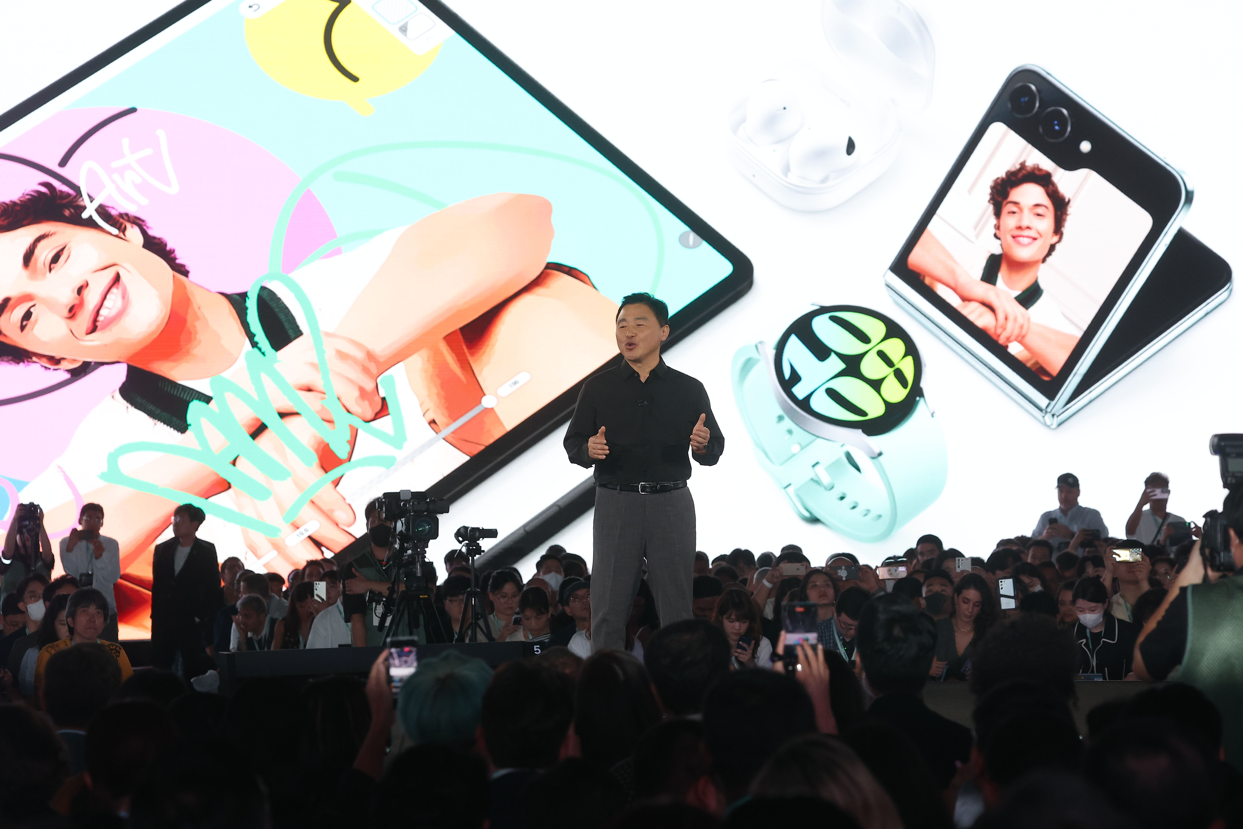 26일 오후 서울 코엑스에서 열린 삼성전자 ‘갤럭시 언팩 2023’ 행사에서 삼성전자 MX사업부장 노태문 사장이 발표하고 있다. 2023.7.26 연합뉴스